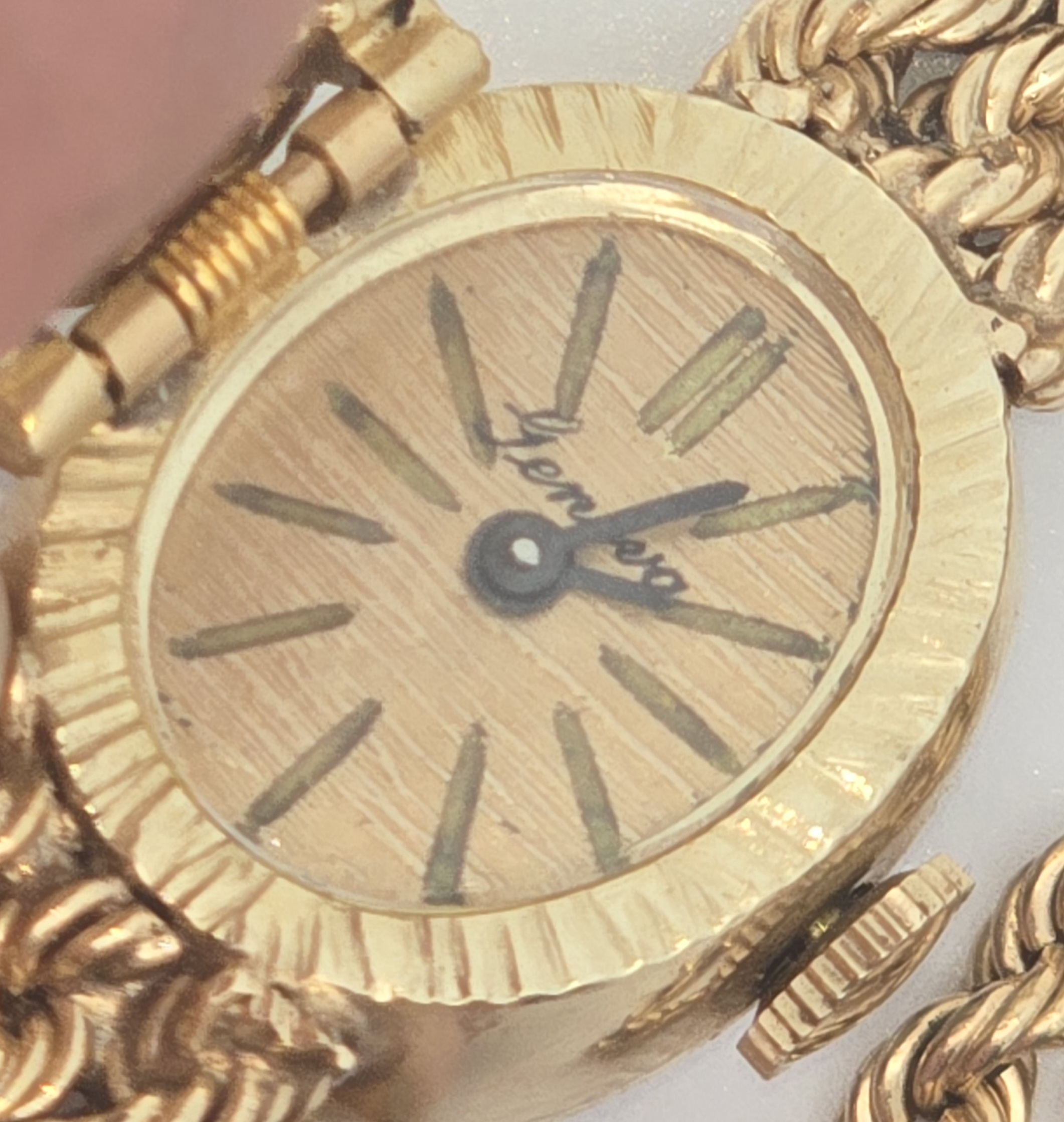 (978) 256-9796Estate- 14K Yellow Gold Opal Flower Top Geneve Wind Up Watch 6 Inches Total Weight 26.5 Grams