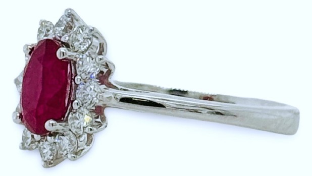4. 18K White Gold 1.10ct Oval Ruby and Diamond Halo Ring