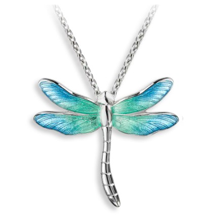 (978) 256-9796Blue Dragonfly Necklace by Master Enamelist Nicole Barr. Sterling Silver