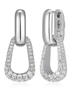 (978) 256-9796Sterling Silver ELLE "Citadel" Rhodium-Plated White CZ Hoop Earrings